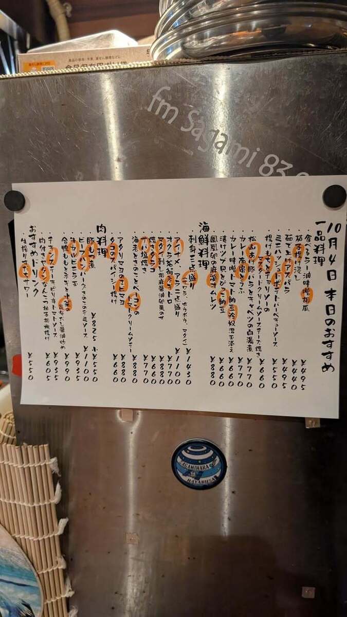 おすすめ料理に“アイナメ、アラ二点盛り”、”サバ塩焼き“、”海老ときのことベーコンのトマトクリームソテー“、“牛カルビニラ玉”が新たに加わり、“揚げもちとチョリソーのマスタードクリームソースチーズ焼き”がお求めやすい価格になりました!