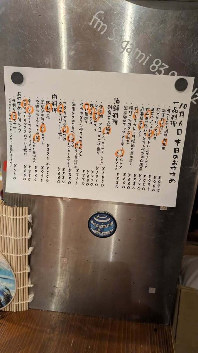 おすすめ料理の“刺身三点盛り”の内容が変わり、“金目鯛、アイナメ二点盛り“、“マグロなめろう”、”イカ下足エンペラとキャベツの肝バター醤油炒め“、“チキンステーキきのこデミソース”、”セセリガーリックスパイシー揚げ“、“揚げもちカレー味噌納豆温玉添え”、”麻婆茄子とうふ“、“漬けイカオクラ納豆”、”鳳凰卵のチョリソーチーズオムレツトマトソース“が新たに加わり、“合鴨ももとネギと水菜の昆布だし醤油炒め”がお求めやすい価格になりました!
